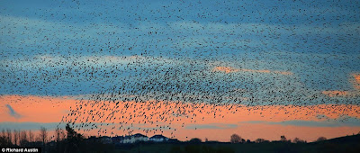 The flock of starlings will grow larger as more birds are driven across to the UK from Russia